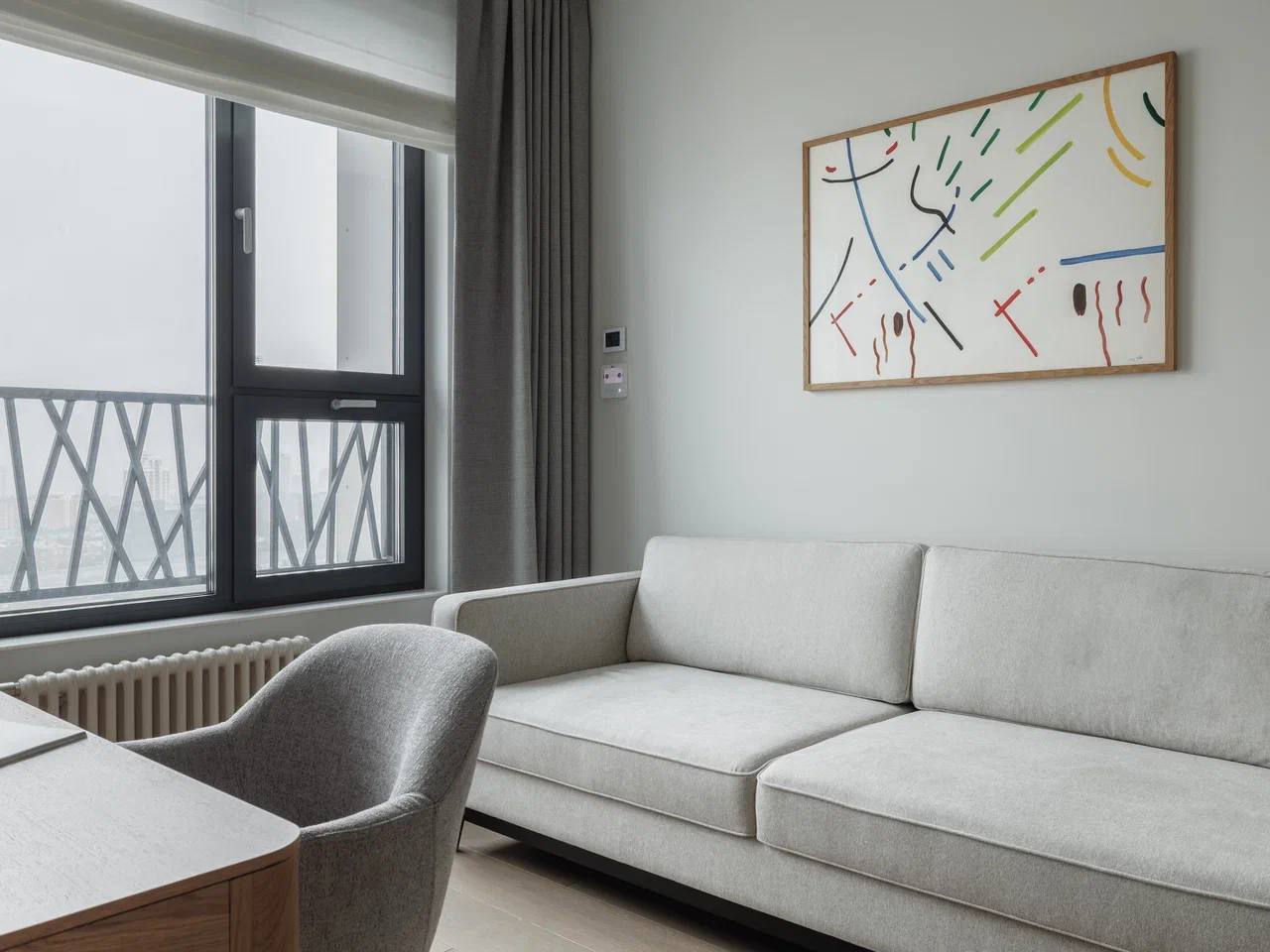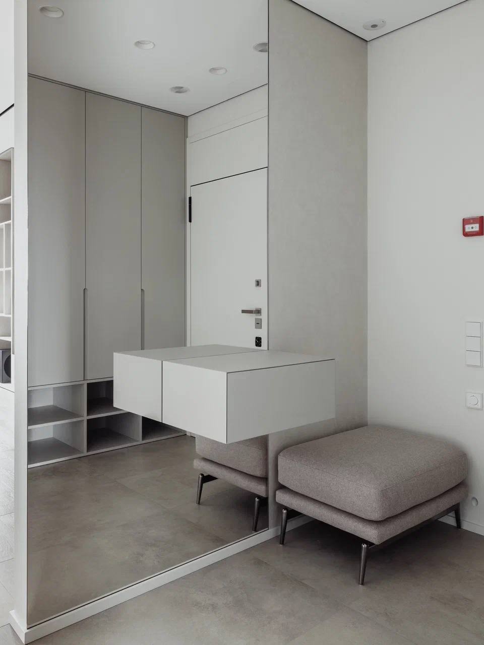 Кабинет получился просторным и не давящим: минимум мебели и светлые тона создают дополнительное пространство и воздух. Сегодня это кабинет для сконцентрированной работы, а в будущем еще одна детская. Такой прием помогает квартире “расти” вместе с семьей и адаптироваться к изменениям без сложных переделок с ремонтными работами.