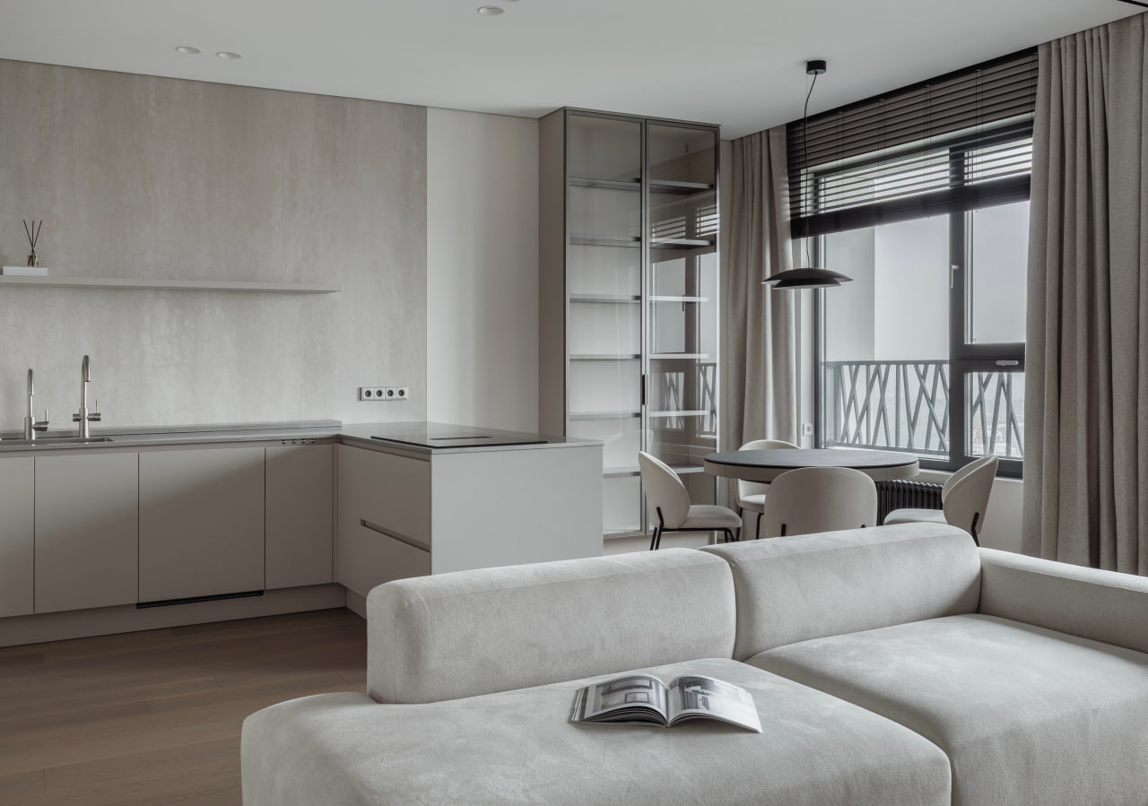 Когда заказчики говорили о своем идеальном доме, они говорили не просто о красивой картинке из Pinterest, а о пространстве, где каждая деталь работает и дополняет их образ жизни. Молодая прогрессивная пара с ребенком хотела увидеть уютное жилье без лишних деталей: пространство в пастельных оттенках без кричащих акцентов и, главное, техническую начинку, которая позволит забыть про слово «ремонт» и переделки на долгие годы вперед. Получилась квартира около 110 м² с открытой общей зоной, кабинетом для работы и комнатой для ребенка – пространство, где технологии не уступают эстетике и визуалу, а интерьер служит образу жизни.